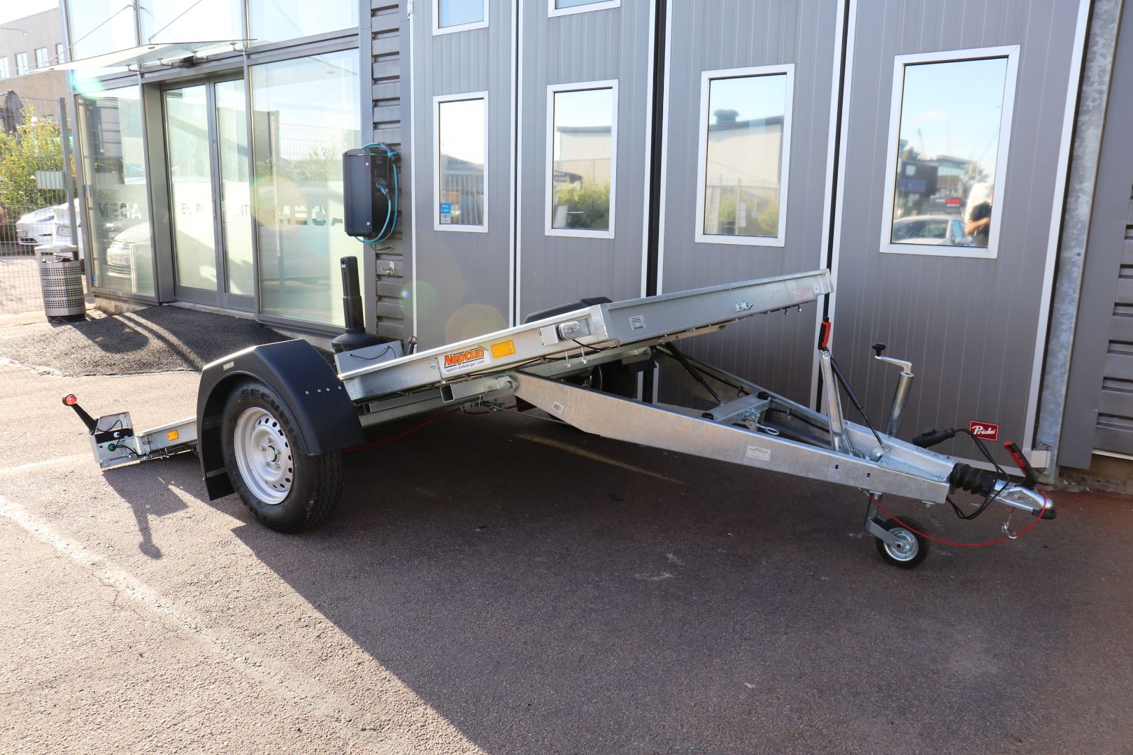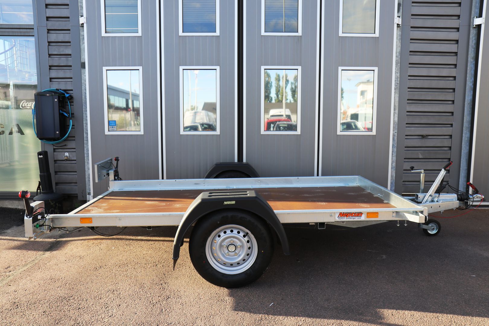 Ett multisläp som passar utmärkt för lastning av ex. minigrävare, snöskotrar m.m. Flakkärra/Flaksläp Maskinsläp UNI N13-305 med tipp 80 km/h bromsad